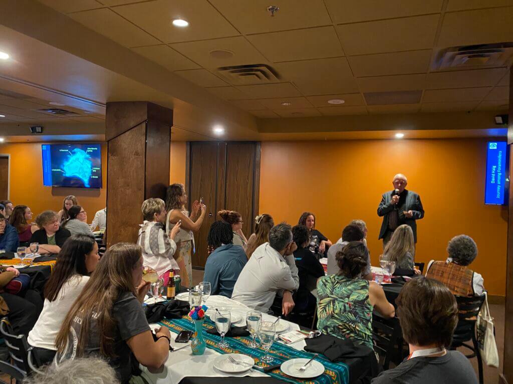 The reception was held at the iconic San Antonio River Walk. Attendees celebrated the 2025 The Joseph A. Cushman Award for Excellence in Foraminiferal Research Awardee, David W. Haig. We also enjoyed a lively raffle, and shared conversations about foraminifera and other topics.
